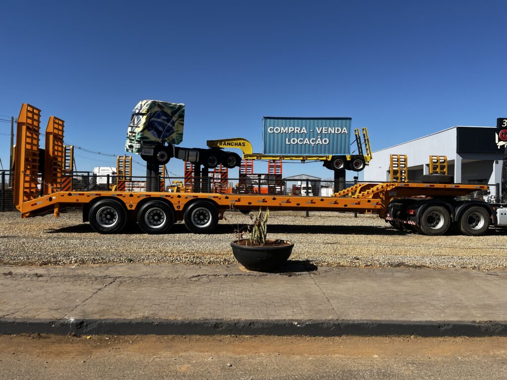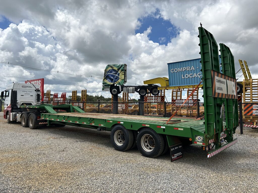 Prancha Carrega Tudo Agrícola RetaMarca Ipranchas02 EixosAno 202411.70 metros de área3.20 de Largura3.5 metros de pescoço najaRampas Eletro Hidráulicas01 par de coxo09 rodas sem pneus